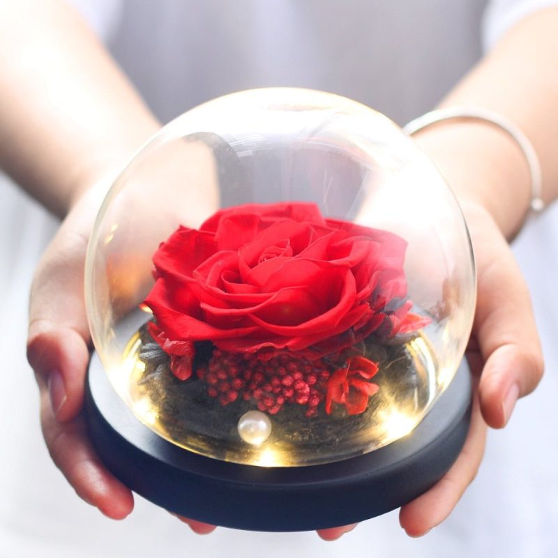 - Matériaux : cloche en verre + rose éternelle