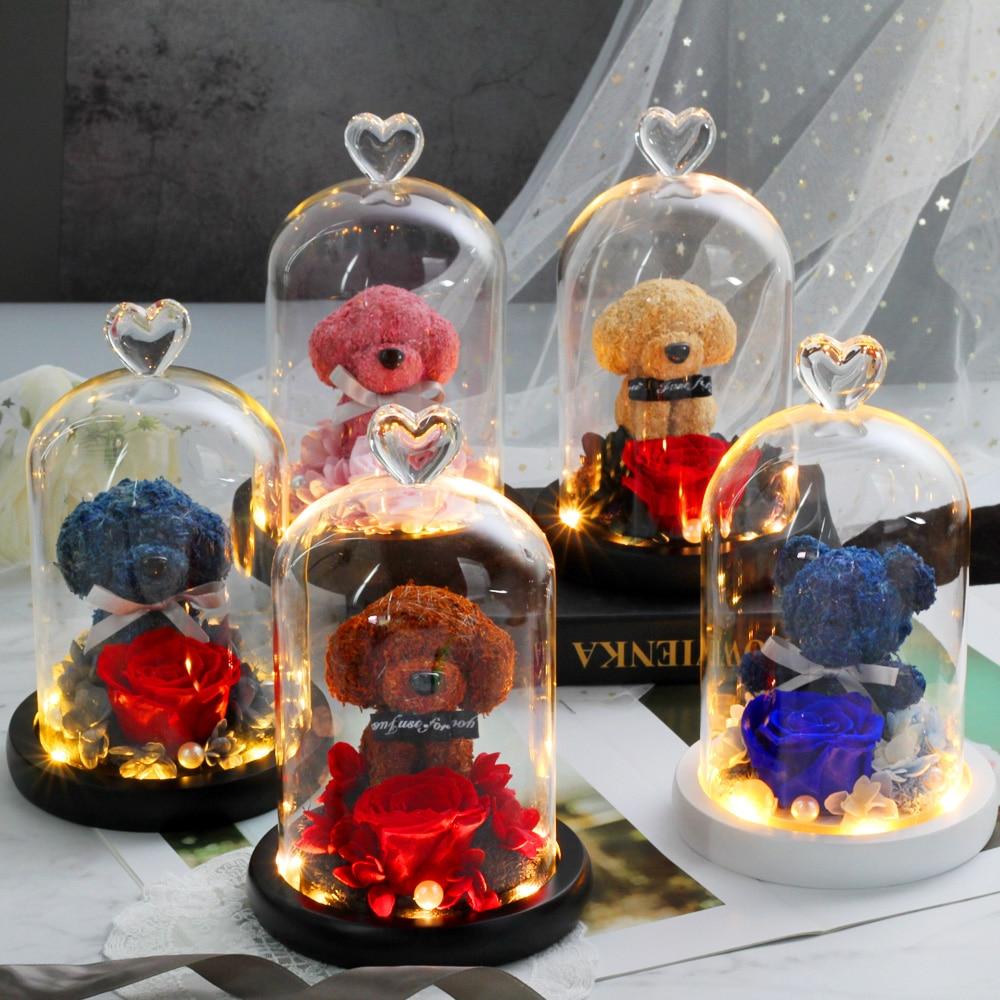 La loyauté d’un chien est incomparable ! Pour cette raison, nous avons sélectionné ce joli petit chiot accompagné de sa rose éternelle sous cloche. Il ne vous reste plus qu’à choisir la couleur que vous préférez !