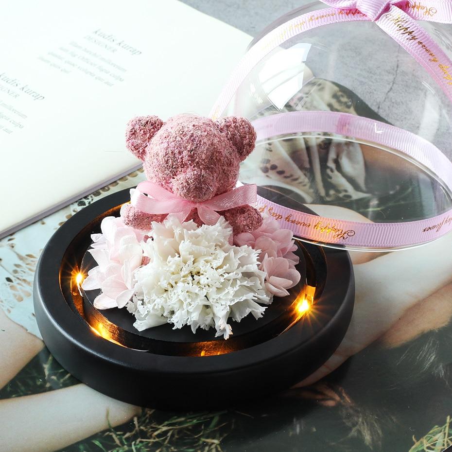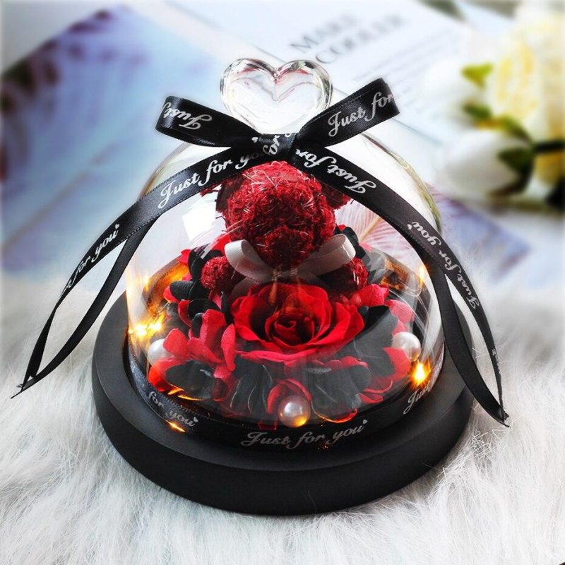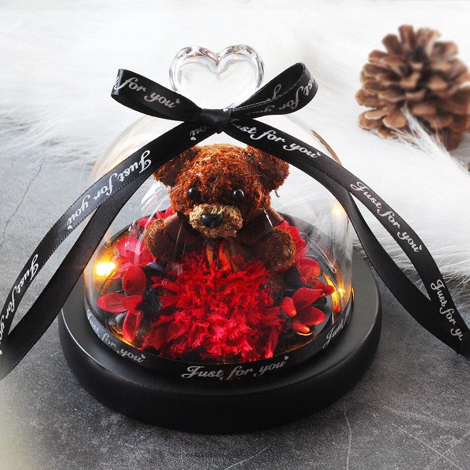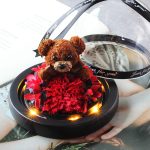 Bien que l'idée de l'ourson sous dôme soit poétique et créative, l'exécution pourrait être peaufinée. Par exemple, des matériaux de meilleure qualité pour le dôme augmenteraient certainement sa durabilité et justifieraient davantage son coût. De plus, un choix plus varié de couleurs pour les roses permettrait d'attirer un spectre plus large de clients recherchant une personnalisation poussée. Enfin, l'emballage pourrait bénéficier d'une option plus écologique et d'une présentation qui mette davantage en valeur le produit lors de son ouverture.